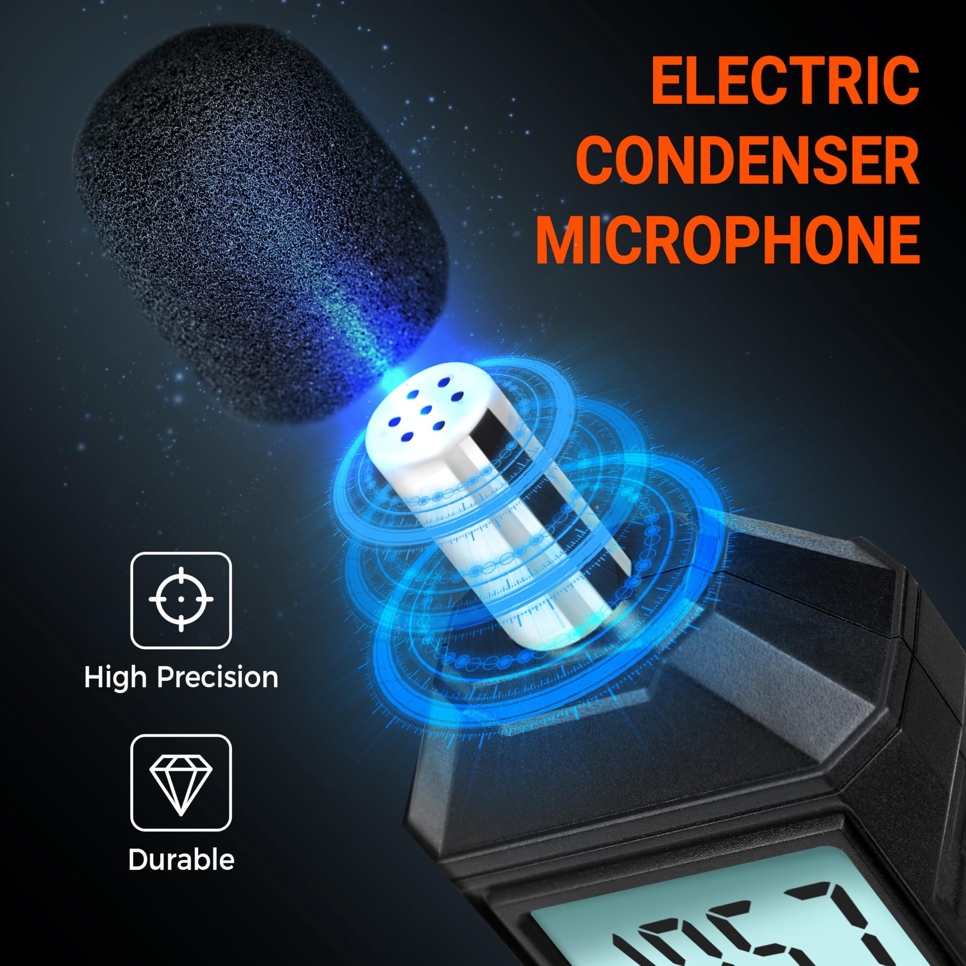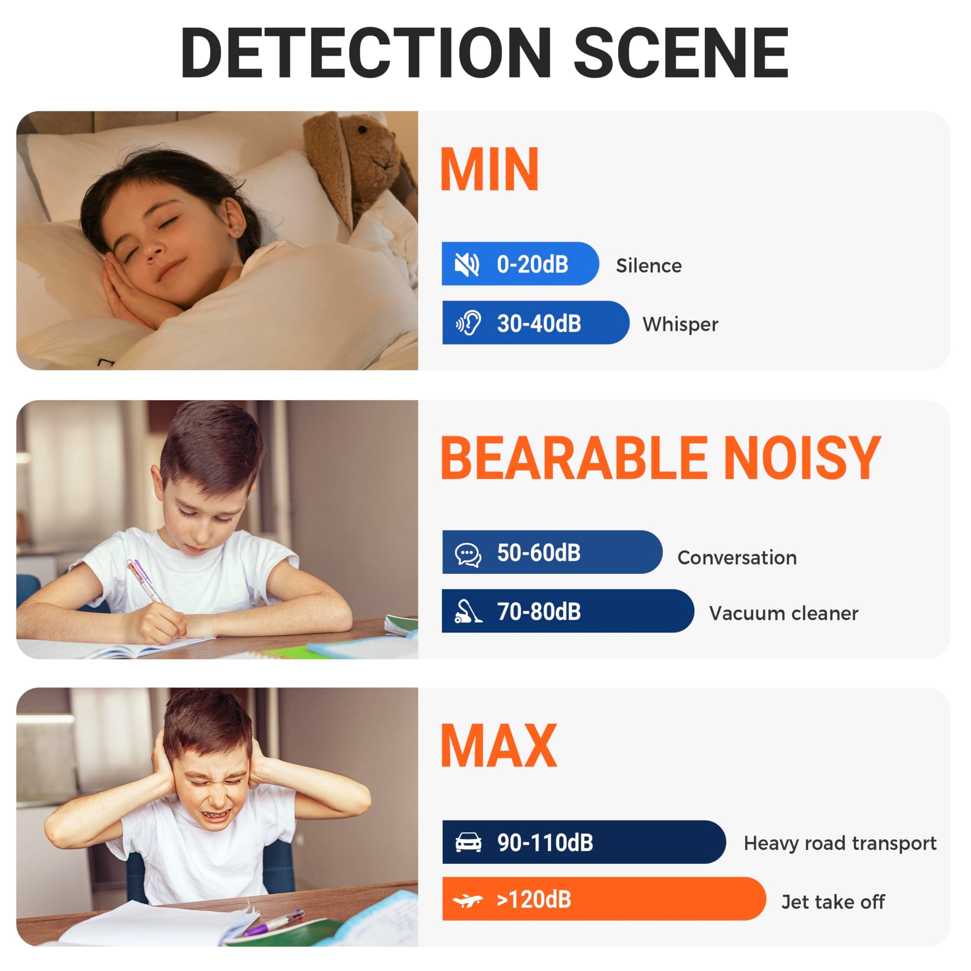 - ACCURATE MEASUREMENT WITH A-WEIGHTED RATING - The sound level meter has a measurement range from 35dB to 130dB, offering high precision with an accuracy of ±1.5 dB. Real-time monitoring provides precise data on the sound levels in the area. The A-weighted measurement simulates the frequency response of the human ear to low-intensity noise, making it suitable for detecting ambient noise.