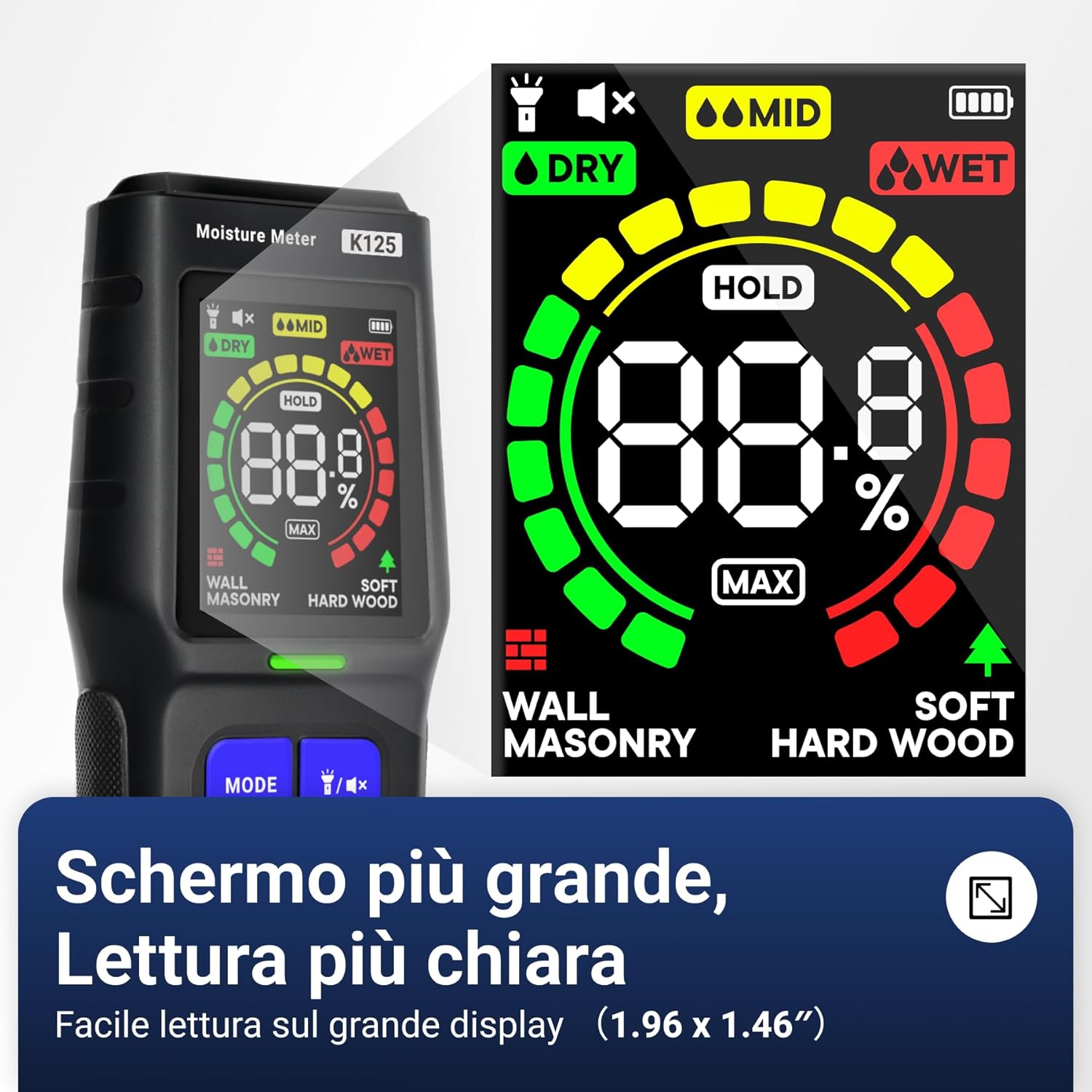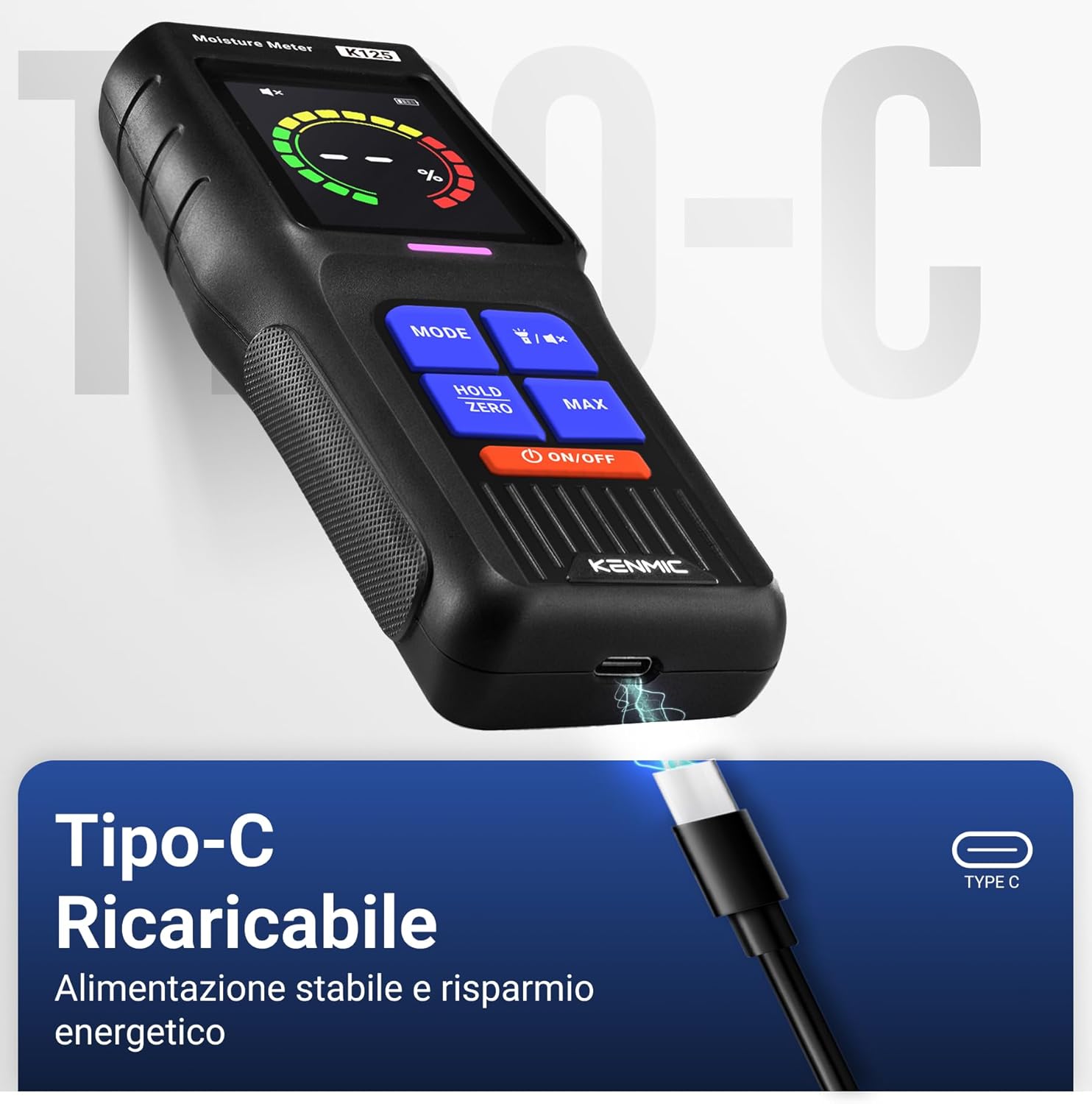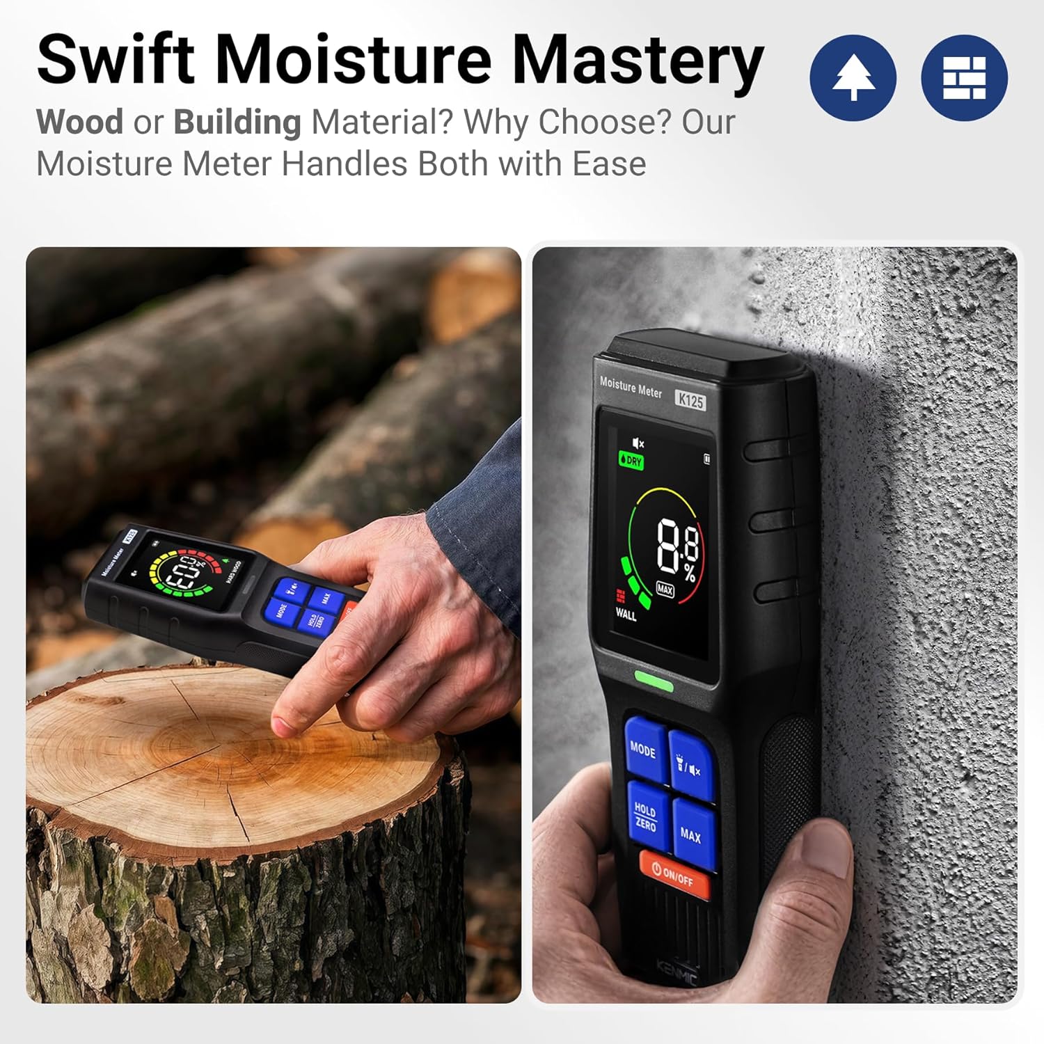 - DURABLE & RECHARGEABLE FOR LONG-LASTING USE: Powered by a 1000mAh rechargeable lithium battery, the K125 wood moisture meter is designed for long-term use. Its compact, lightweight design makes it perfect for professionals and DIY users testing firewood, building materials, or construction sites.